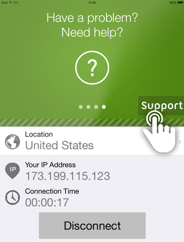 Uygulamanın ekranını birkaç kez kaydırın ve Destek'e tıklayın